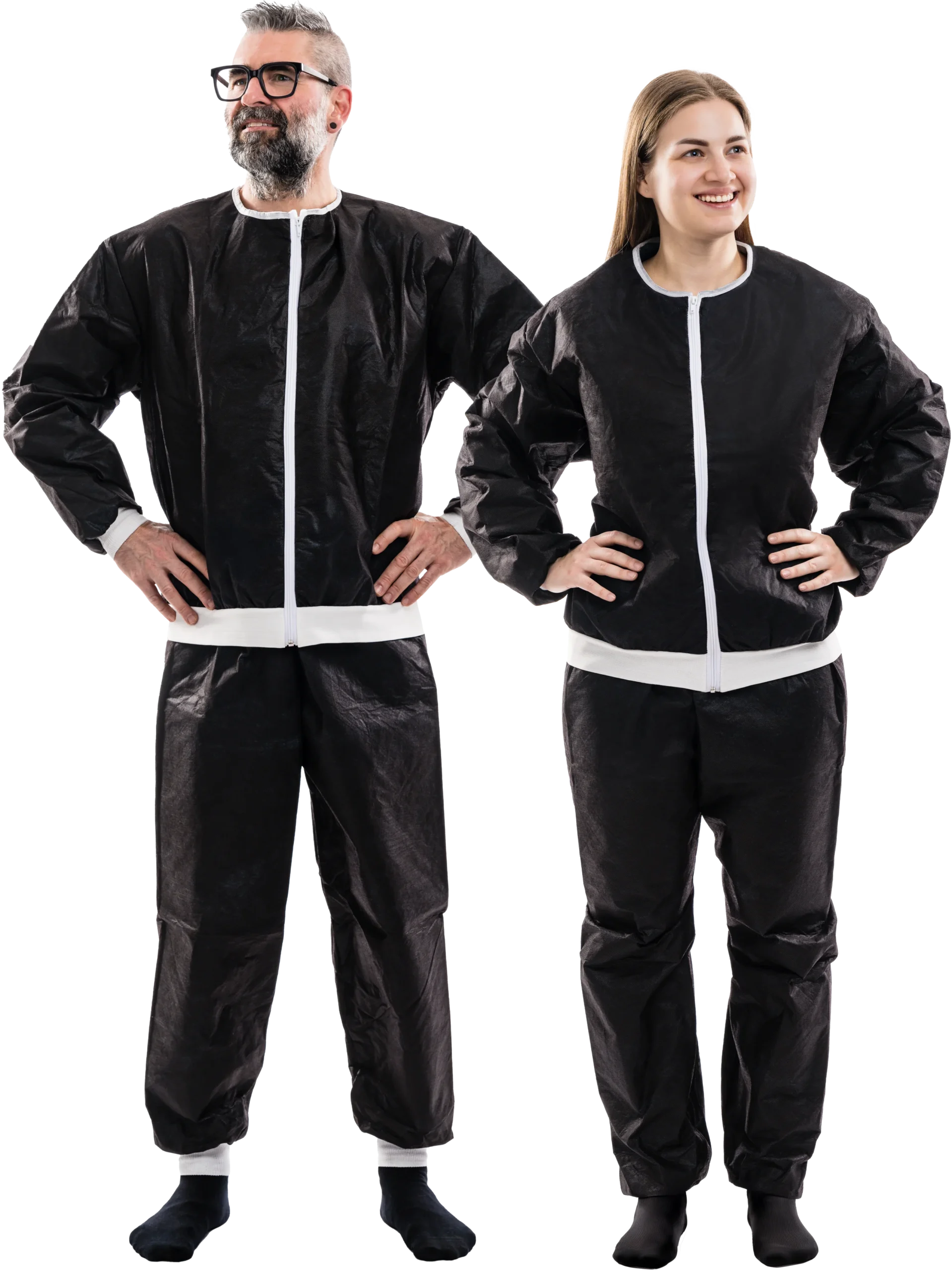 Léger, respirant et d’un noir élégant pour une présentation digne et un port agréable. Coupe décontractée et poignets élastiques sans devoir se changer et sans pression sur les plaies sensibles.